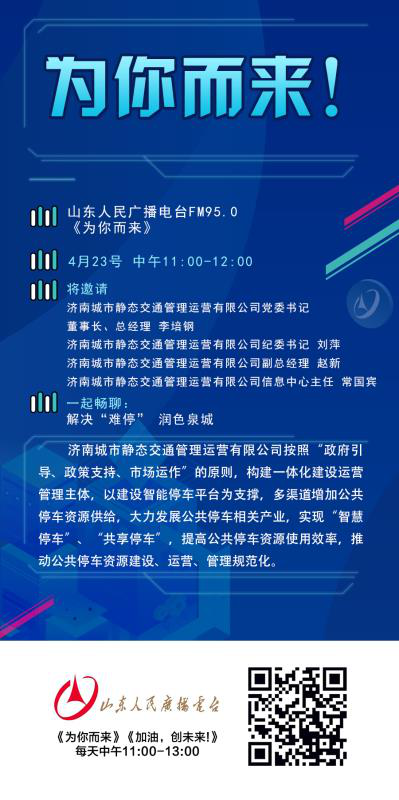 4月23日上午,公司黨委書記 、董事長,總經(jīng)理李培鋼;監(jiān)事會主席、紀(jì)委書記劉萍;副總經(jīng)理趙新;信息中心主任常國賓做客山東人民廣播電臺《為你而來》節(jié)目。就“舜耕智能停車場投入使用可以給大家停車帶來怎樣的便利?智能停車場有什么特點?停取車都有哪些步驟?都有哪些人性化服務(wù)、讓利于民的措施?收費標(biāo)準(zhǔn)是什么?”等大家關(guān)心的問題,在節(jié)目中作了詳細(xì)的解答。