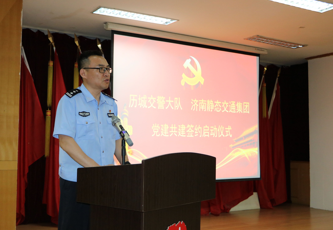 市交警支隊(duì)黨委副書記、政委段富勇,市國(guó)資委黨委委員、副主任謝紅兵,歷城交警大隊(duì)黨總支書記、大隊(duì)長(zhǎng)孫如彬,濟(jì)南靜態(tài)交通集團(tuán)黨委書記、董事長(zhǎng)李培鋼等參加共建簽約揭牌儀式并講話。儀式由歷城交警大隊(duì)黨總支副書記、政委崔科軍主持。