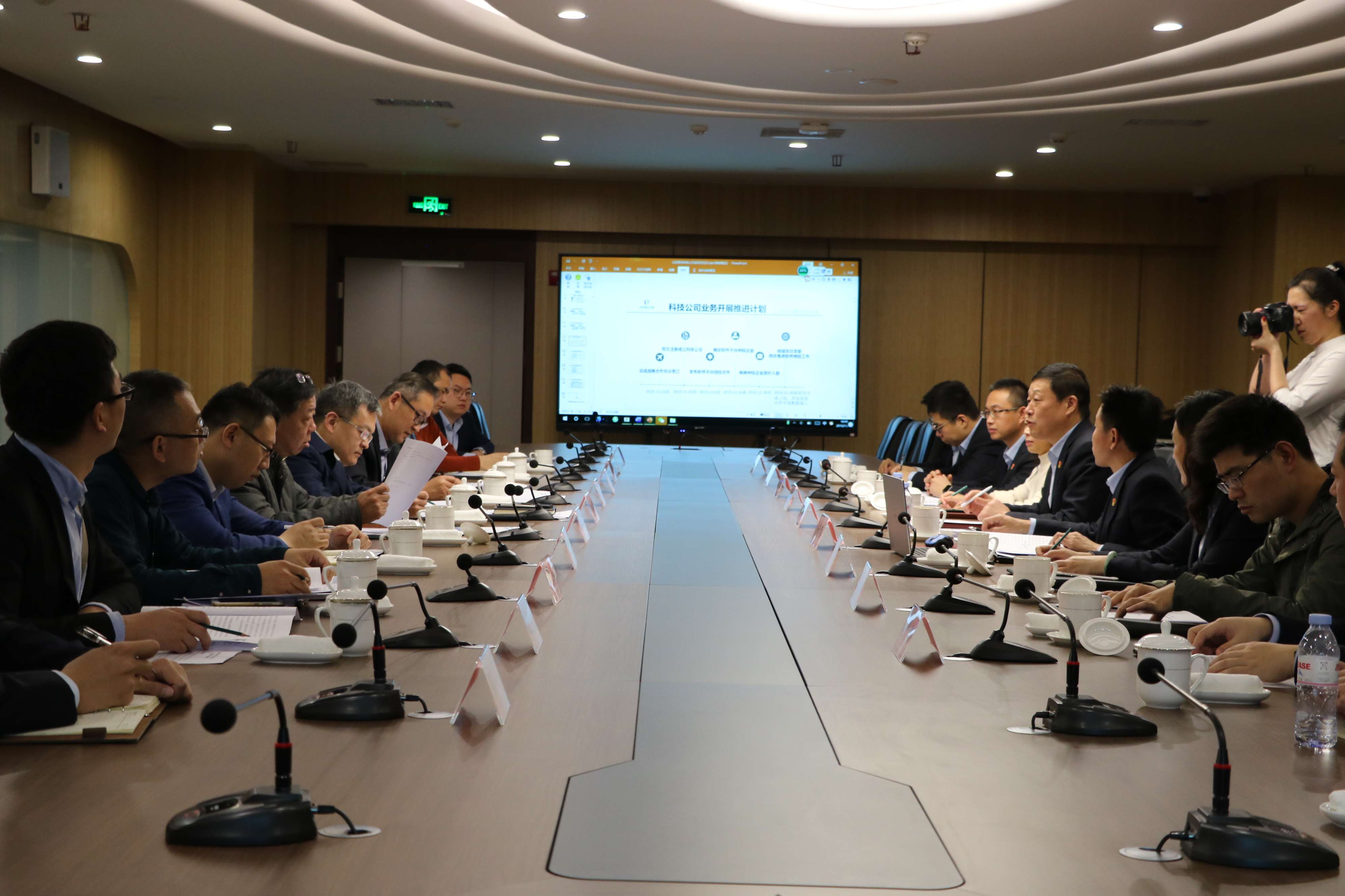 ? ? ? ? 隨后,市工信局楊福濤副局長、郭德貞總工程師組織公司領(lǐng)導(dǎo)班子一行與浪潮集團(tuán)、智慧泉城公司領(lǐng)導(dǎo)班子進(jìn)行了深度座談交流。雙方立足智慧交通的建設(shè)和發(fā)展,圍繞合資公司成立相關(guān)細(xì)節(jié)內(nèi)容進(jìn)行了溝通,并就智慧停車云平臺建設(shè)、軟硬件開發(fā)等重點(diǎn)進(jìn)行了深入交流,進(jìn)一步助力智慧城市建設(shè)工作的開展。