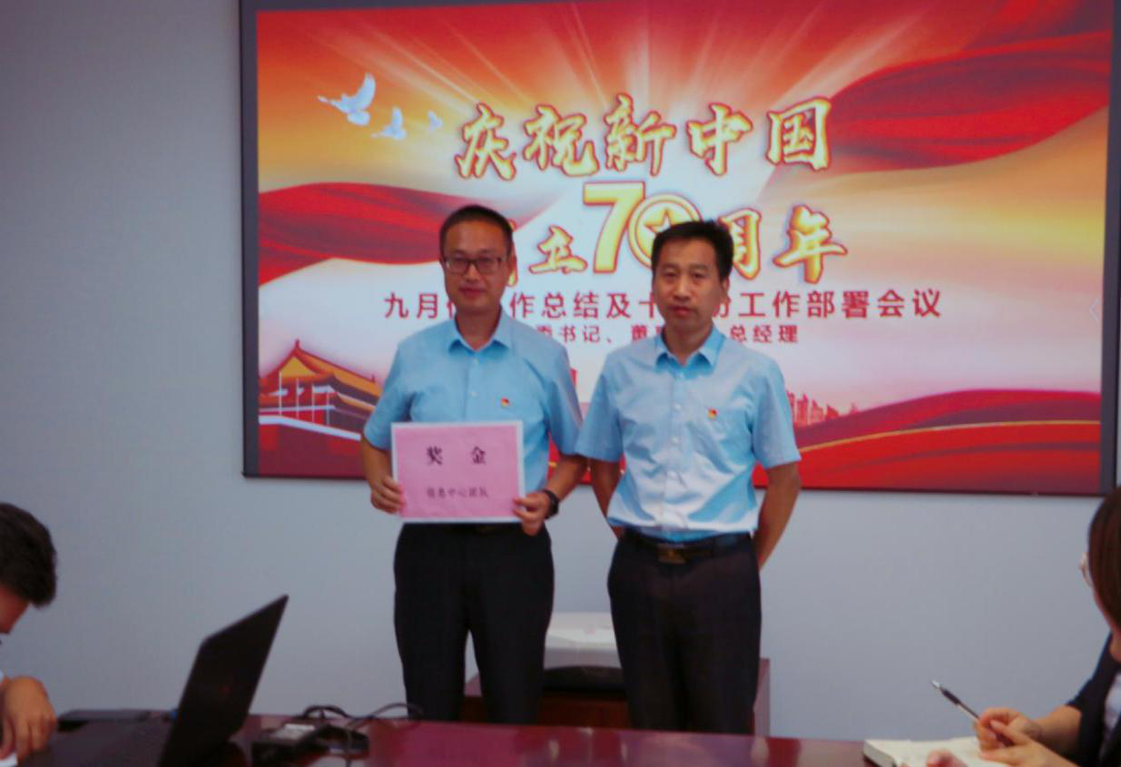 公司常務(wù)副總經(jīng)理楊學惠給信息中心團隊頒獎
